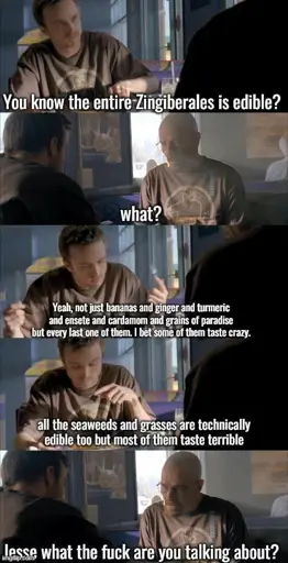 In the second half of my comment I talk about Poales. So, Poales as you might have guessed from the ending is a separate order of plants. In it are most prominently the grasses (Poaceae) OP spoke about in their post. OP talked about seaweeds, but I pointed out that they aren't even seed plants (=Spermatophyta). I also mentioned seagrasses, which are seed plants (they even flower and are not too distantly related to the Zingiberales or Poales). But they are in another order: the Alismatales. This order's most famous members is the aroid family Araceae (containing e.g. Monstera, Philodendron, etc).