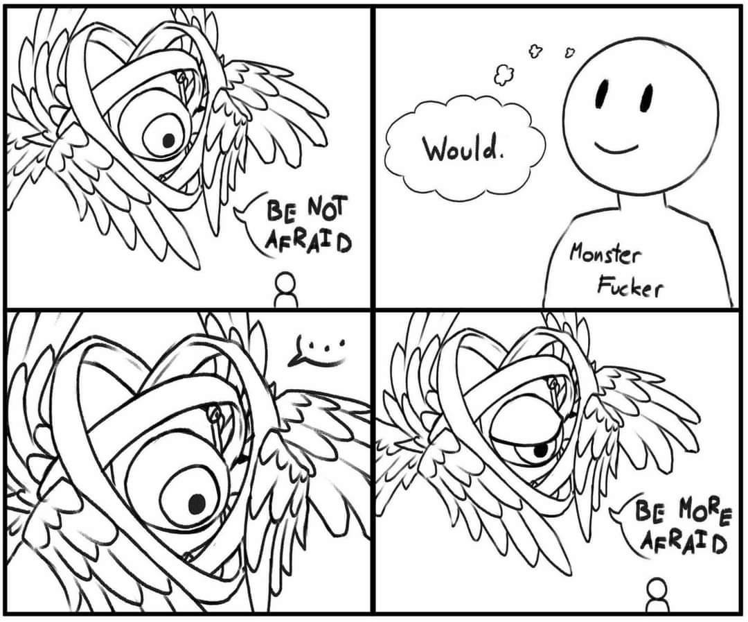(I don't know the source. Search just gives the tumblr #monster fucker tag, which... seems accurate.)