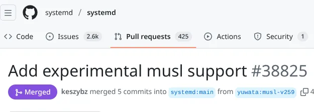 Systemd today finally merged support for building against and using the musl libc library. This is a win for Linux distributions like postmarketOS, Alpine Linux, and others that use musl by default as their standard C library or offer it as an option.