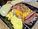 I'm cleaning out the leftovers one meal at a time. The wife wanted hashbrowns. That's a perfect vehicle for my second to last smoked sausage, half an onion, some venison chili, half a loaf of homemade bread and the last of our eggs.