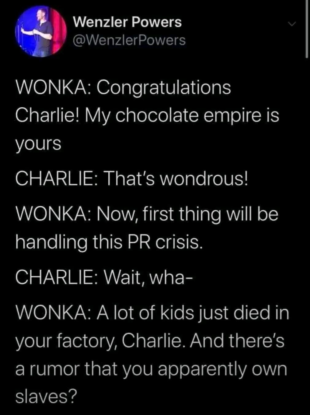 You mean the oompa loompas? Those aren't kids. I don't think... 🤔
