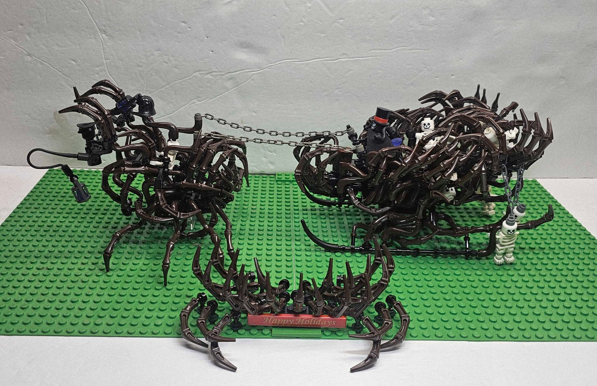 This build was inspired by the recent santa sleigh Christmas set that was on sale during Black Friday. I almost pulled the trigger on it, but after looking up what parts it came with I decided to use that money to create a Bricklink order consisting of dark brown elephant trunks, and appendages (my favorite part) I knew I wanted to create an Eldritch Horror-esque type build, and roughly 5 hours later this was the end result last Friday. It will be on display at our last LEGO Christmas show of the year.