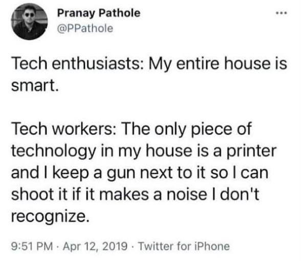 I don't want any sort of device or appliance in my home that requires an internet connection that doesn't get a long time of security updates. My old printer died and they're so bad now I just don't have one. I'm going back to a dumb flip phone because this one's battery s dying. I use everything I can without spending money because I've never had a lot to spend to try and maintain my privacy. I keep spam email for the random site that wants you to enter one. The IoT is cancerous, it creates huge security holes because these appliance manufacturers don't care about security one iota. I have worked in IT for 15 years professionally with over that personal experience. I hate what the internet has become, I want something more akin to the 2000s back or at least the scrubbing of corporate mandates cut out. It's actually more dangerous to be on it because of advertisements. I would still have internet and gaming PCs regardless, but I want tech that's basic and functional.