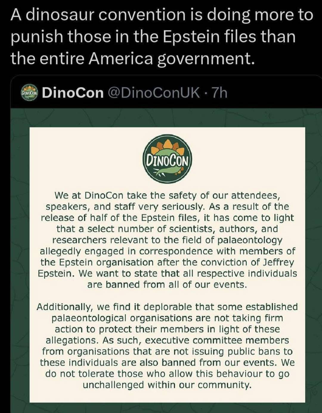Science Memes @mander.xyz fossilesque @mander.xyz 2mo ago When DinoCon is doing more than the US Gov https://nbcmontana.com/news/local/scientist-jack-horner-linked-to-jeffrey-epstein-in-newly-released-doj-files