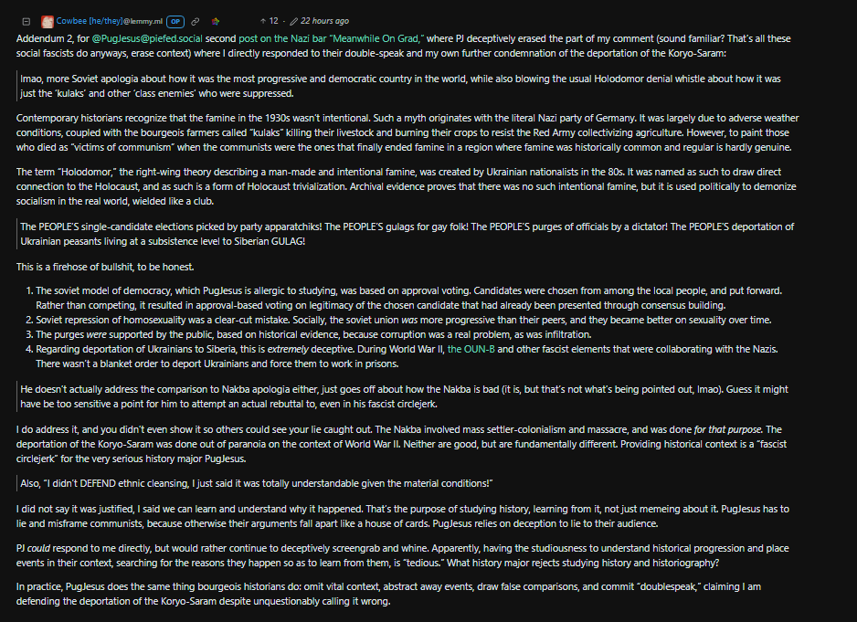 "The Holodomor is a Ukronazi hoax, single-candidate elections are actually SUPER democratic, and Stalin only deported fascists!" - Greatest hits of fascist bootlickers