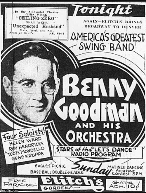 Benny Goodman on the Let's Dance show was around 1934-1935.