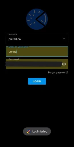 I get a "Login failed" error when attempting to login to Piefed. I intentionally tried with an incorrect username and password to see if it may be a connection issue, but I instead get a different error: "An unknown error has occurred".