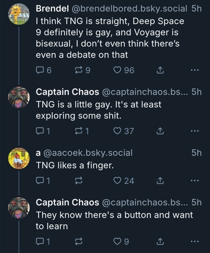 CAPTAIN CHAOS: TNG is a little gay. It's at least exploring some shit.