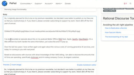 Fuck AI @lemmy.world How comprimised is Ed Zitron (Where's Your Ed At)?
